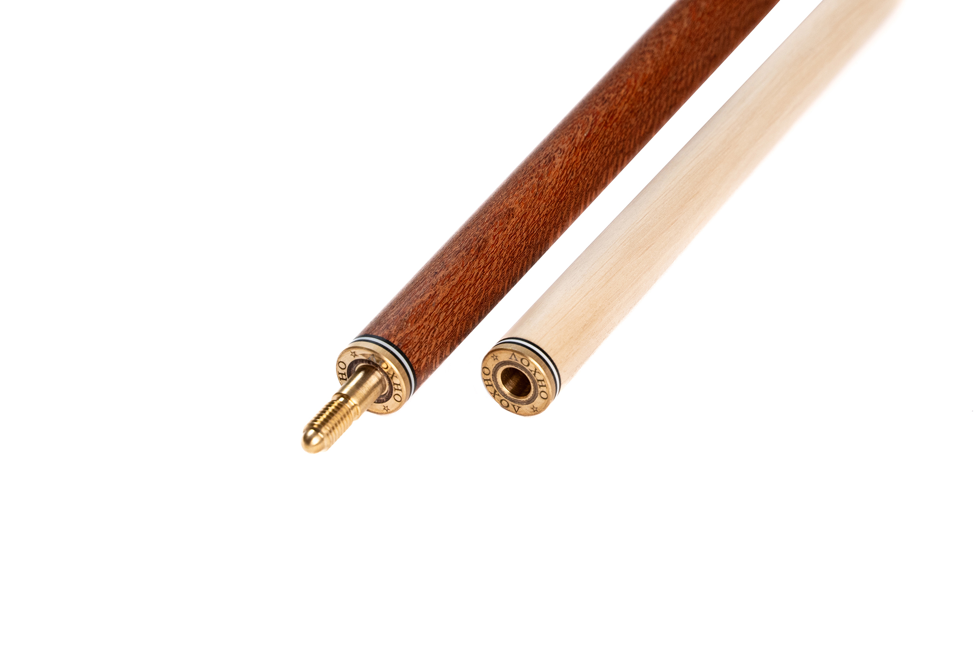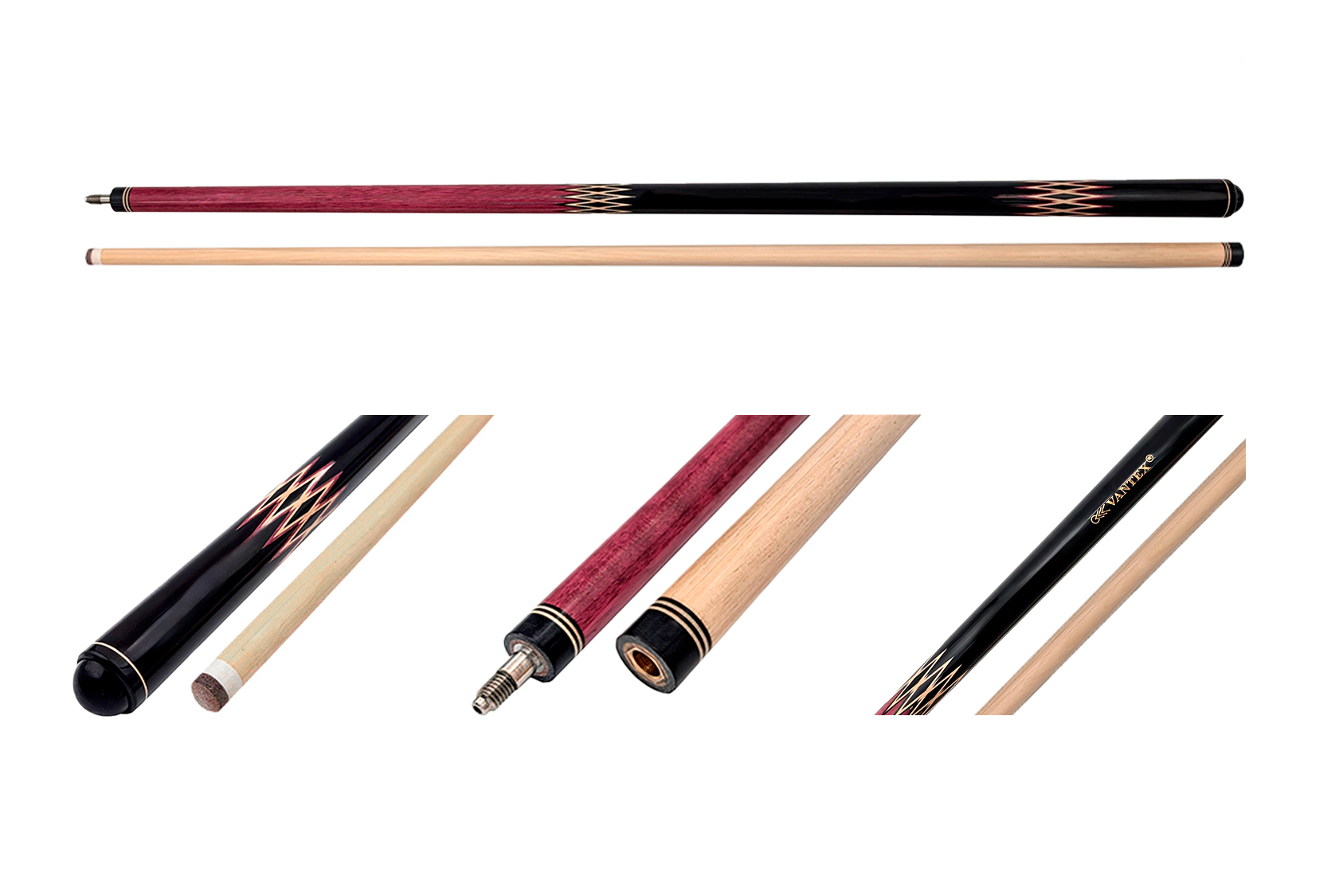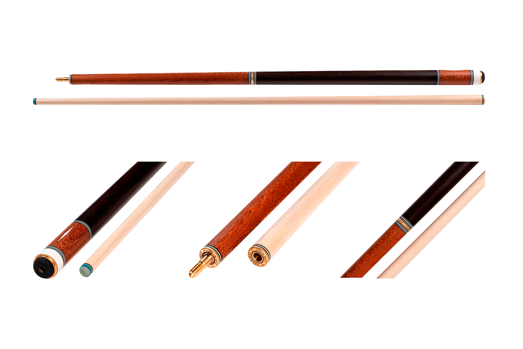 Большое влияние на выбор модели оказывают элементы оформления: обмотка, резьба на рукаве, инкрустация камнем, цвет и форма запилов. Древесина для изготовления выбирается твердая, можно купить разборный кий для русского бильярда из граба, палисандра, с запилами из груши, карельской березы и др.
